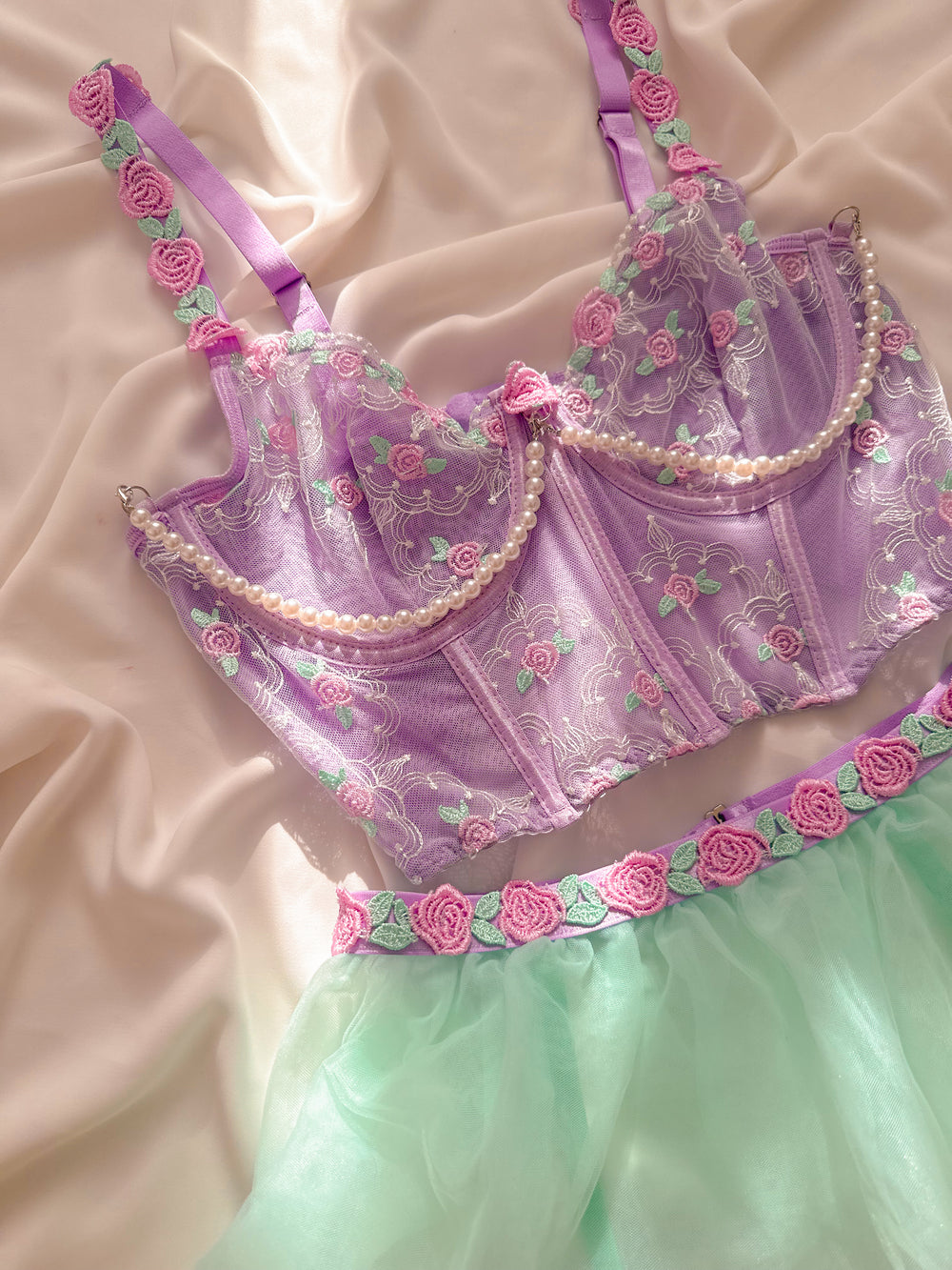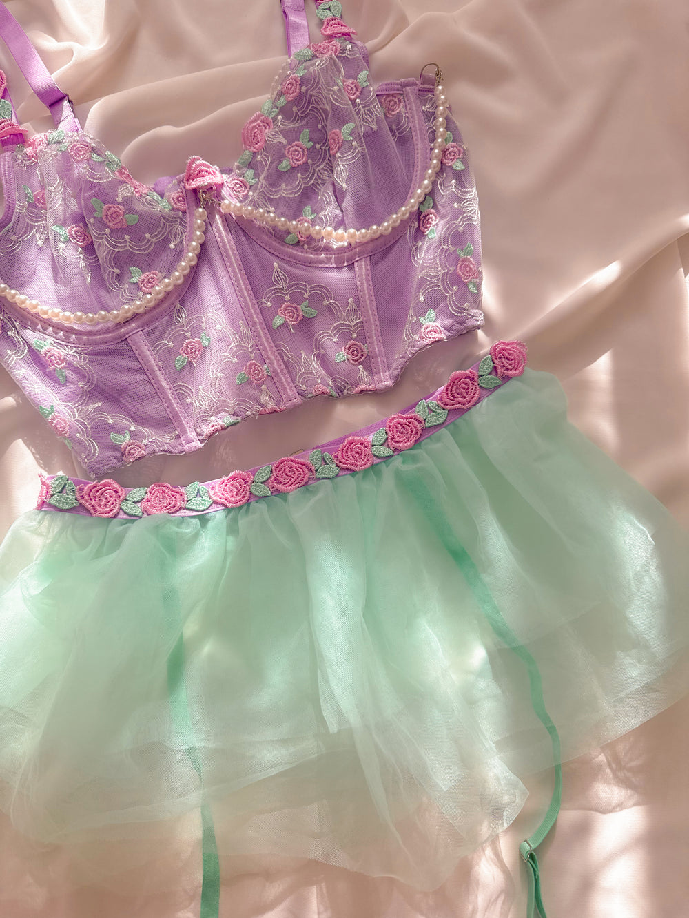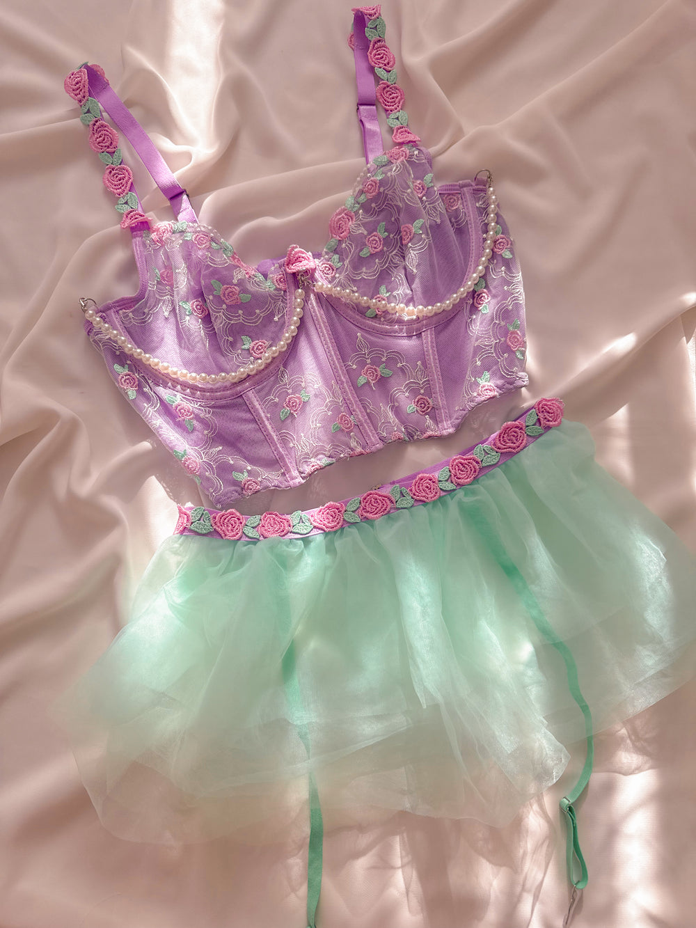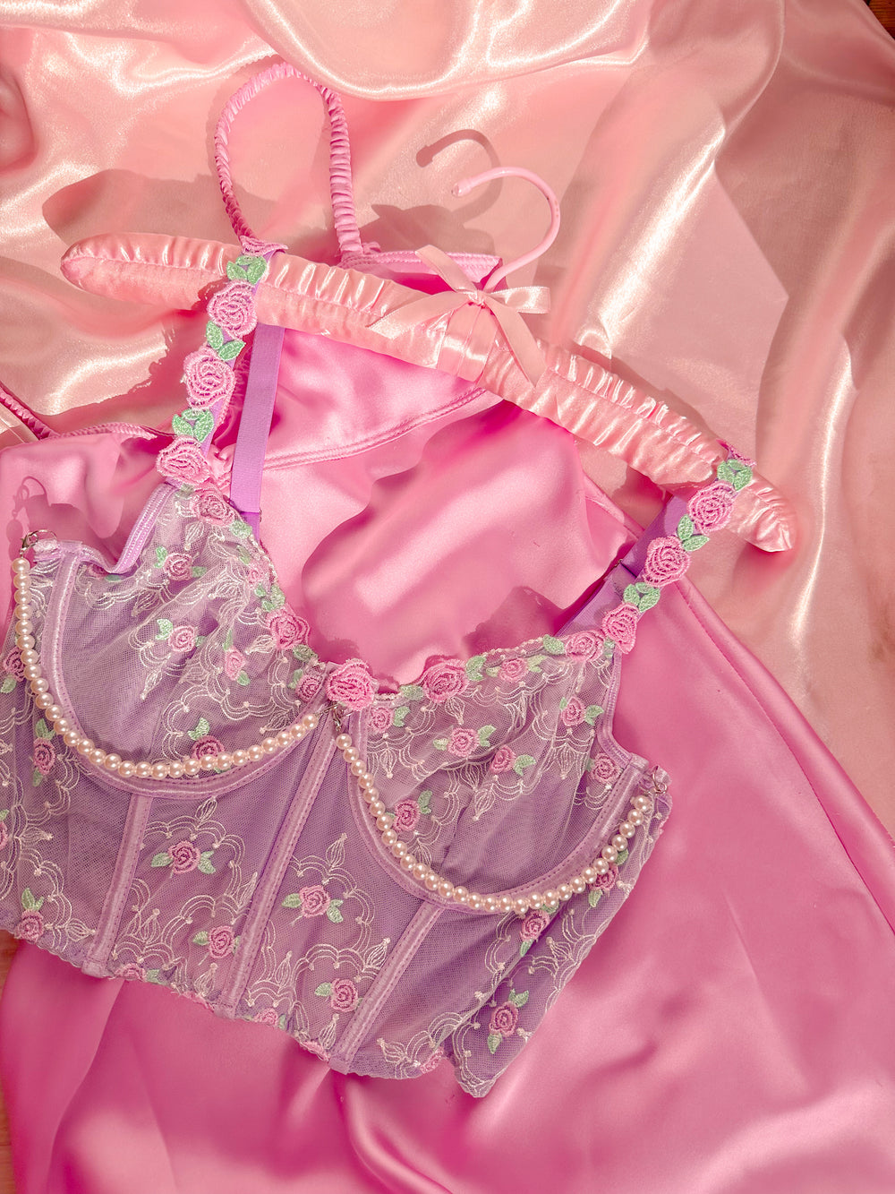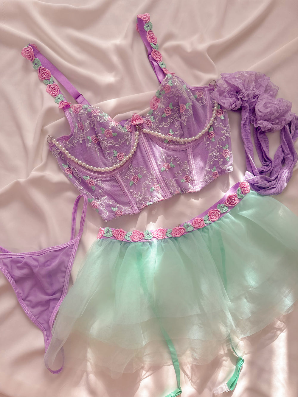 Mermaid Etekli Balenli Jartiyerli Büstiyer Takımı Lila