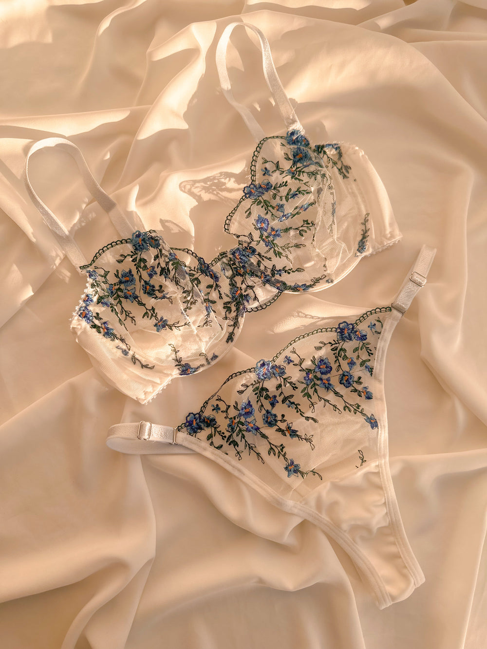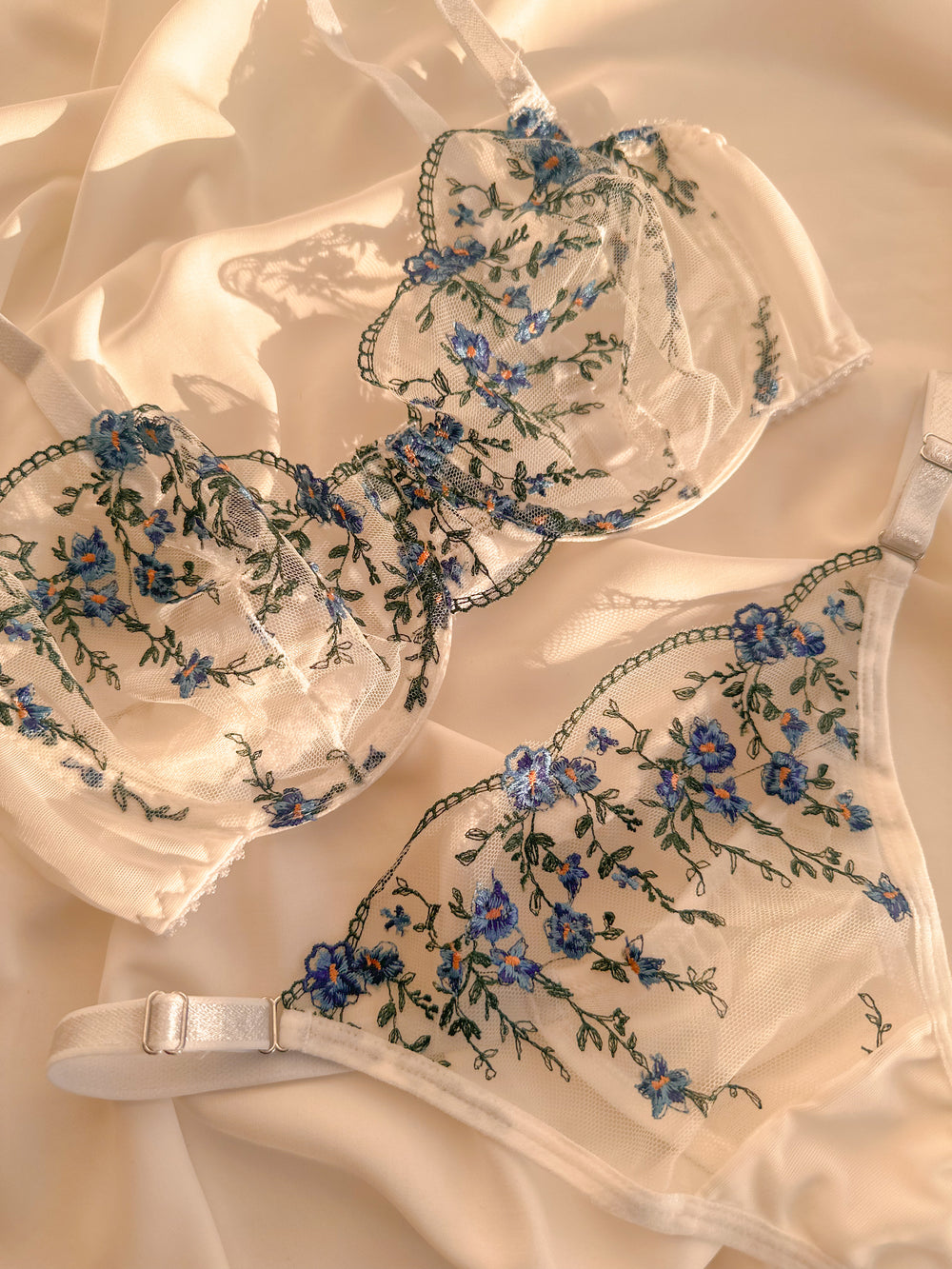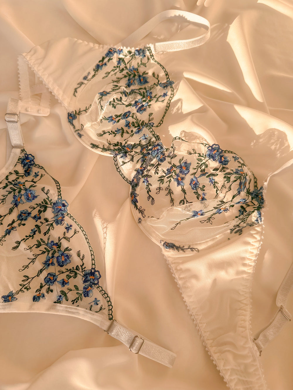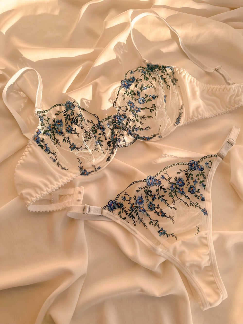 Myostis Çiçekli Balenli Balkonet Sütyen Takımı Beyaz