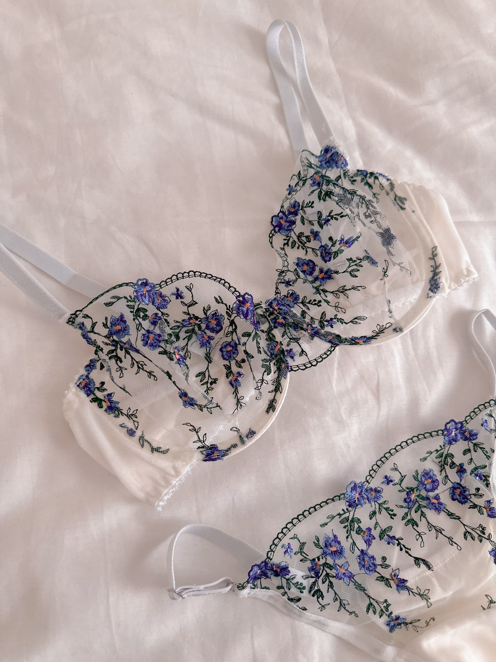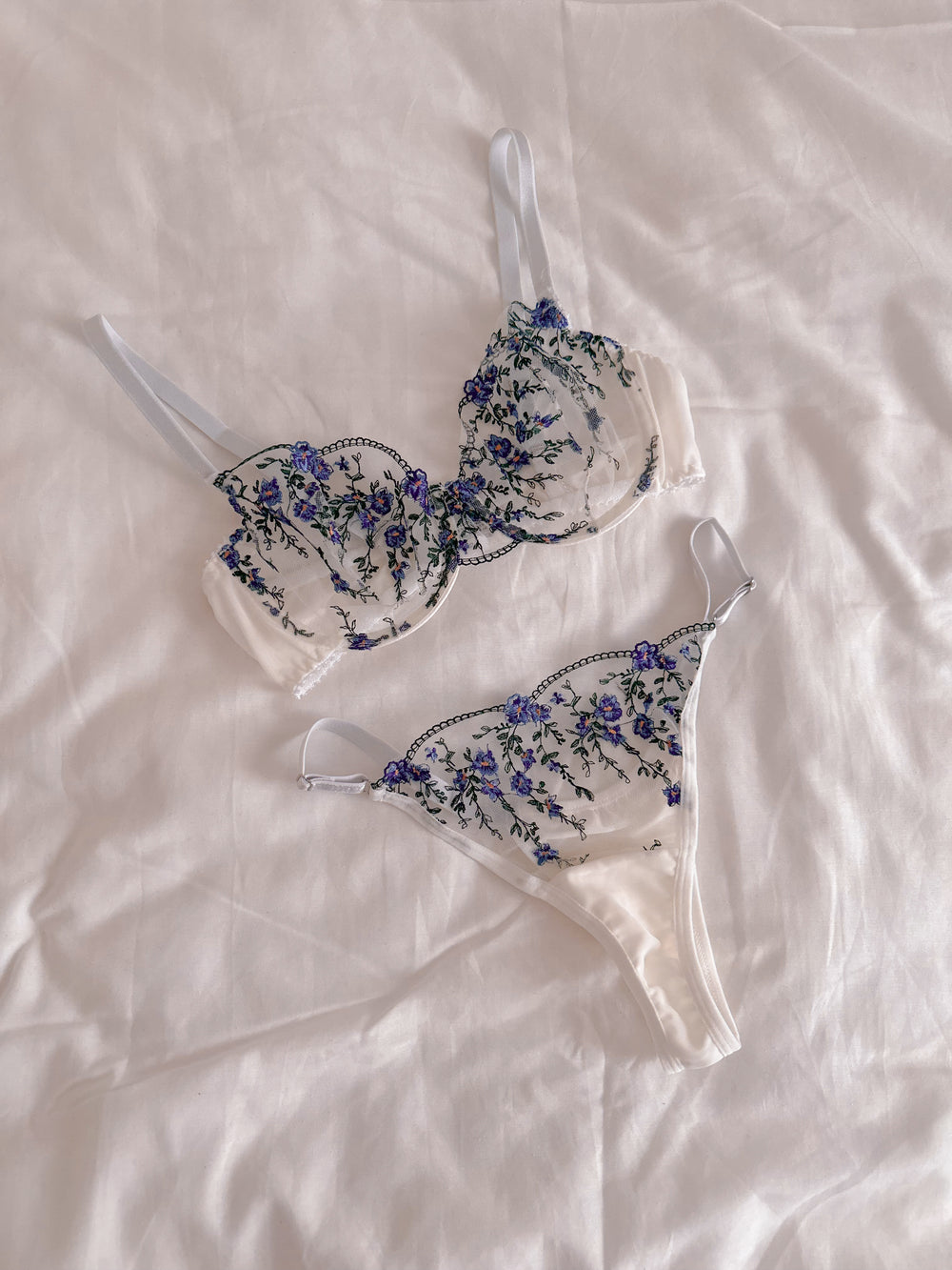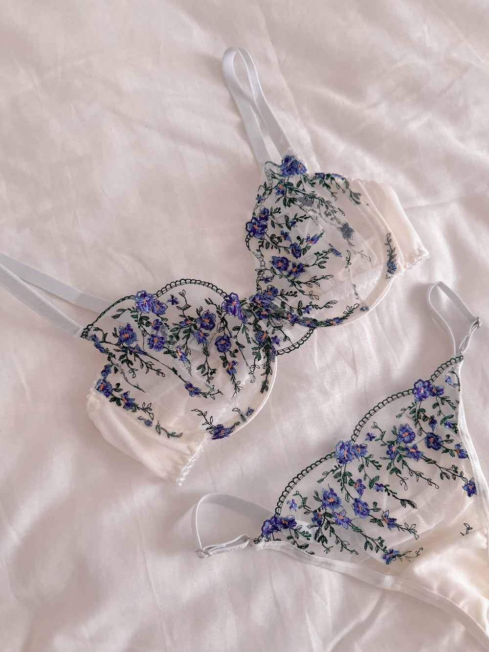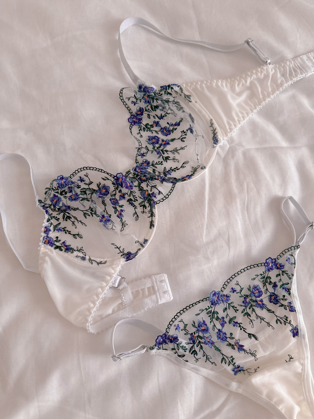 Myostis Çiçekli Balenli Balkonet Sütyen Takımı Beyaz